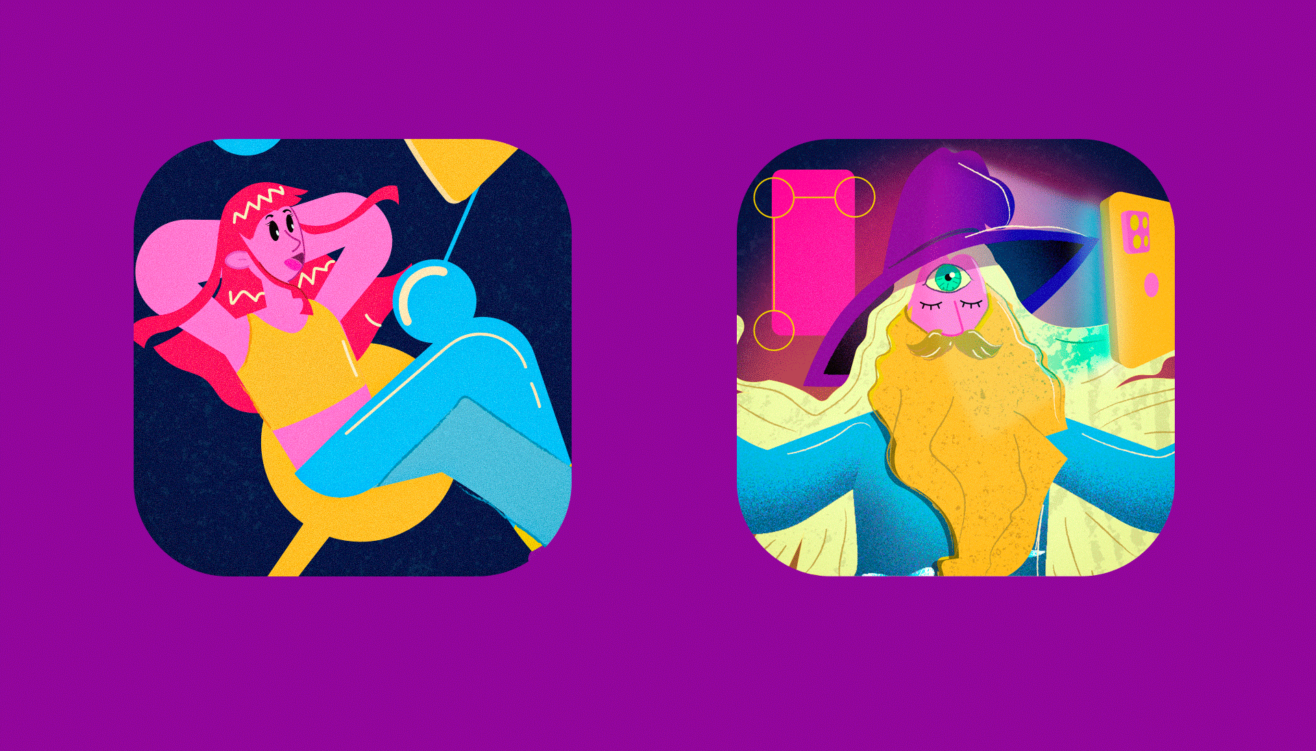 [EN] The illustration system explores forms of communication, or rather means of sharing experiences that have been important throughout history. The choice of a monospaced typographic family happened because this type of fonts refers to the beginning of computing, a moment in which digital relations took place in a more organic and human way.