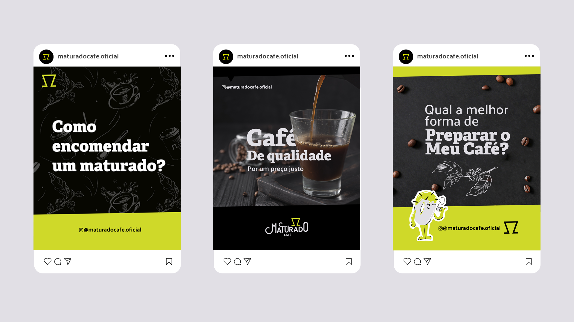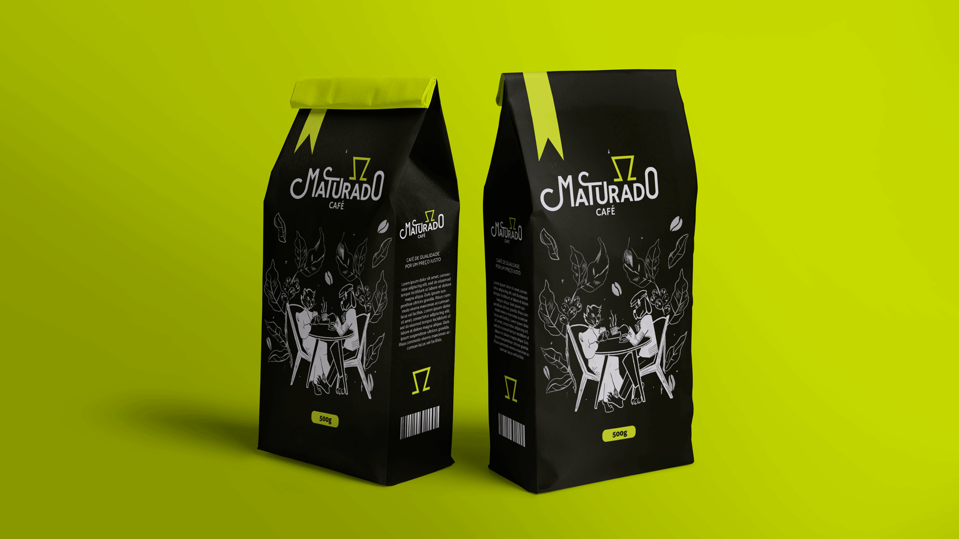 [EN] Maturado is a fun, dynamic, and contemporary brand. Its mission is to provide individuals and their families with the experience of affordable specialty coffee. The brand was born in Londrina, a city where coffee culture stands as one of its main pillars. It was conceived by a couple who value great culinary experiences. We aim to craft an energetic, modern, and simultaneously welcoming visual identity. Our research led us to create an unconventional visual appeal, featuring colors and shapes seldom seen in the brand's industry.